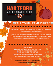 An opportunity for our youth to enhance their volleyball skills, grow their confidence, and learn teamwork all while having fun on the court. This program is being coached by the HUHS Girls Volleyball coaching staff and being hosted by Hartford Volleyball Club.